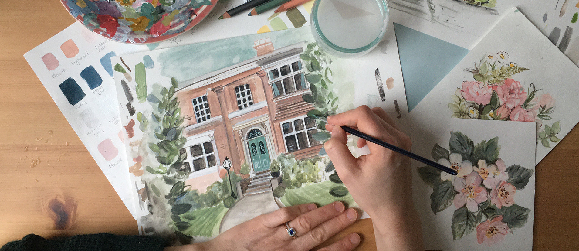 I specialise in architectural illustration and I've worked with a range of clients including The University of Sheffield and award winning property developer, 21 Living. I also create bespoke pieces for private clients, and I am often found working on a house portrait or bespoke map.